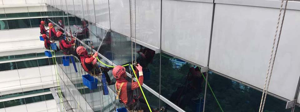 Abseiling Technologies specializes in rope access façade cleaning work cater for both post construction and general building maintenance cleaning. Regular maintenance of external façade will ensure the elements looking attractive and gives positive impact on building values. Our cleaning contract range from some of the highest building reaching almost 60 storey.